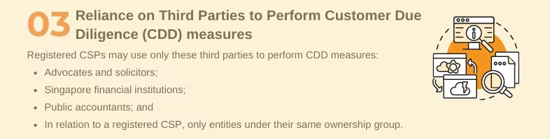 企业服务提供商CSP在依赖第三方执行客户尽职调查CDD措施时,只能使用这些有专业资质的第三方来执行:
