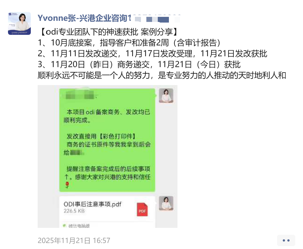 今天,我们分享一个真实案例,看专业团队如何凭借丰富经验与细致服务,帮助客户在短时间内高效完成ODI备案,顺利迈出国际化第一步。