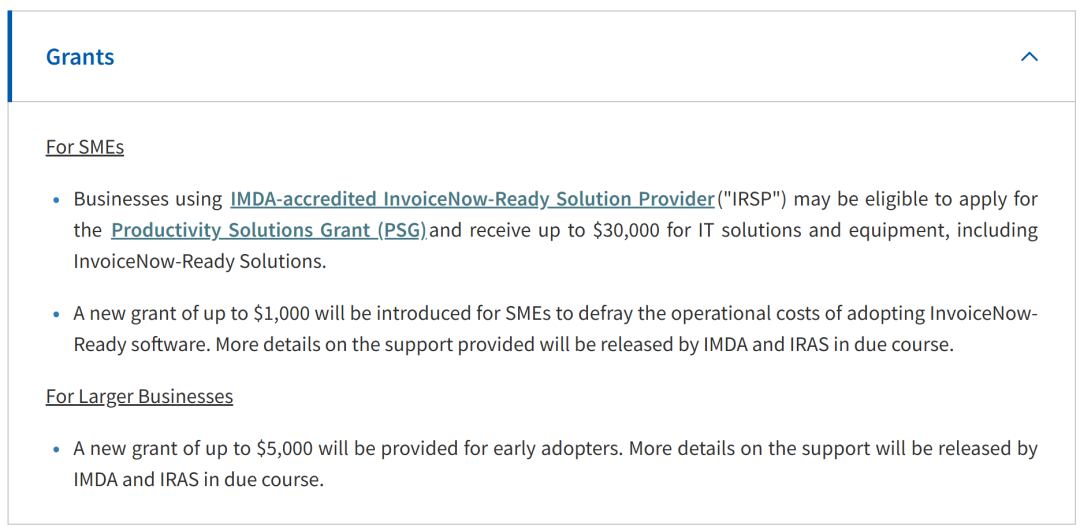 生产力解决方案津贴(PSG):符合条件的IT解决方案和设备可获最高30,000新元资助。